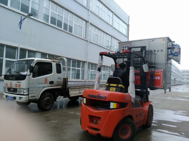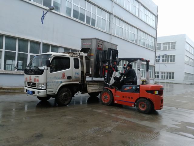 風(fēng)雨無(wú)阻,發(fā)往山東棗莊的自動(dòng)脫毛機(jī)裝車(chē)實(shí)拍圖片
