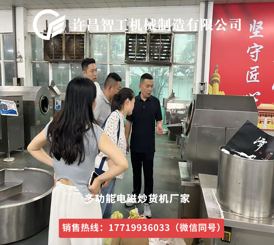 2025年6月18日,許昌智工機械制造有限公司迎來了一批特殊的客人——來自安徽阜陽的客戶。他們帶著對高品質(zhì)炒貨設(shè)備的期待,專程來到許昌智工,對小型電磁炒貨機進行實地試機,主要測試設(shè)備炒制瓜子的效果。