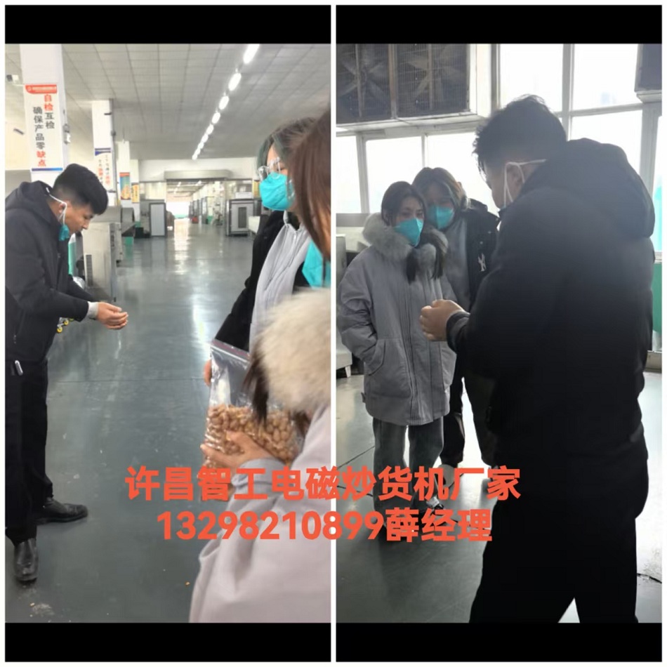 2月6日,開封客戶來廠試機炒制五香花生米,口感香酥可口比人工炒制效果好