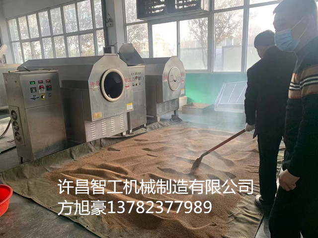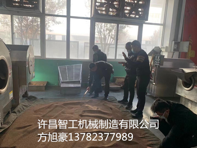 許昌智工DCCZ7-15型電磁炒貨機(jī)一鍋可炒制200斤芝麻,40分鐘一鍋,炒制出的芝麻鼓肚飽滿均勻一致,客戶非常滿意。