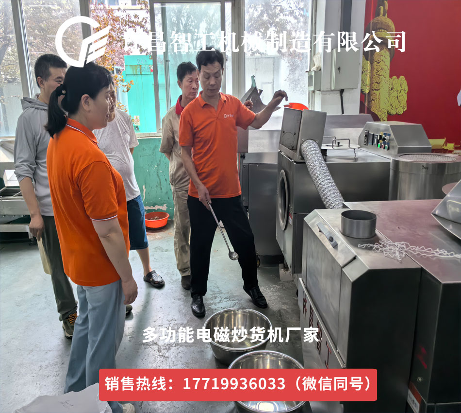 上??蛻魣F(tuán)隊(duì)在許昌智工相關(guān)負(fù)責(zé)人的陪同下,參觀了公司的生產(chǎn)車間與研發(fā)中心,重點(diǎn)考察了智能電磁炒貨機(jī)等核心設(shè)備。許昌智工技術(shù)人員詳細(xì)介紹了設(shè)備的溫控系統(tǒng)、翻炒均勻度、產(chǎn)能效率等技術(shù)參數(shù),并現(xiàn)場(chǎng)演示了大米茶炒制的全流程。智能化設(shè)備憑借精準(zhǔn)控溫、節(jié)能環(huán)保、減少人工干預(yù)等優(yōu)勢(shì),獲得了客戶的高度認(rèn)可。