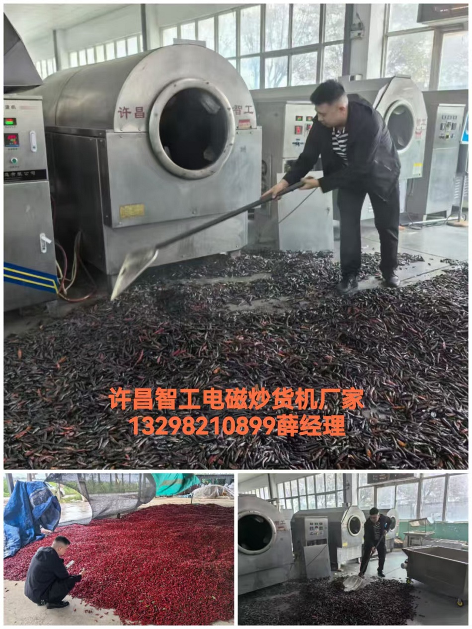 10月12日,貴州客戶來廠考察電磁炒貨機炒辣椒。